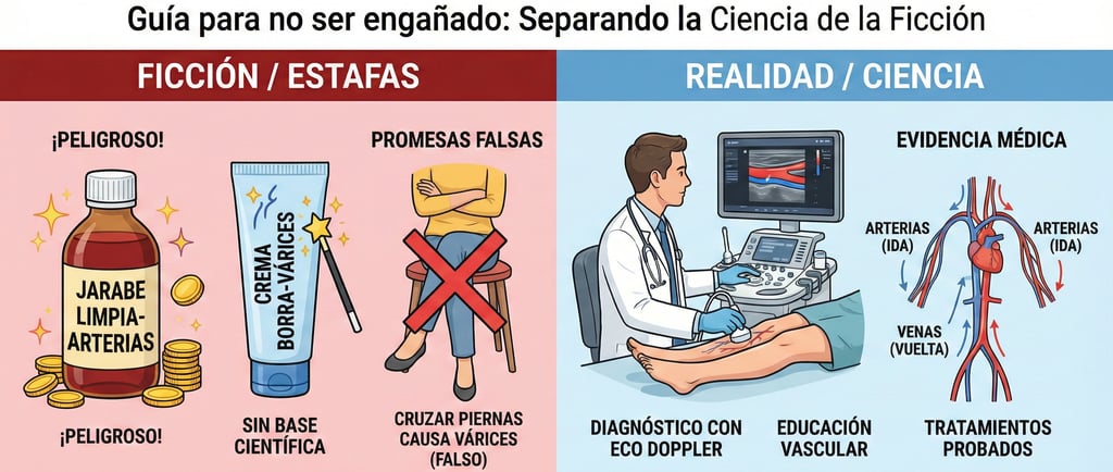 En la era de internet, es fácil encontrar anuncios prometiendo limpiar tus arterias con un jarabe o borrar tus várices con una crema milagrosa. Como especialista en cirugía vascular, mi deber no es solo operar, sino educar y proteger a mis pacientes de tratamientos que no tienen base científica y que, en el peor de los casos, pueden ser peligrosos. Hoy vamos a separar la ciencia de la ficción.